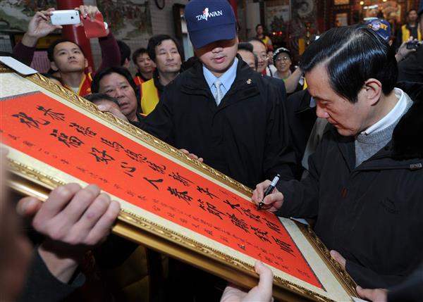 稍早,總統參拜完慶雲宮後,以地方風土及宗教民俗為題,與鄉親進行有獎徵答活動,並發送總統福袋,祝福民眾在新的一年鴻兔(圖)大展。