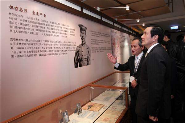 隨後,總統由明台高中董事長林芳媖及「台灣抗日志士親屬協進會」會長林光輝導覽,參觀林家相片、印信、日記及任命狀等豐富的珍藏史料,並於離開會場時親切地與觀光客握手致意、簽名留念。