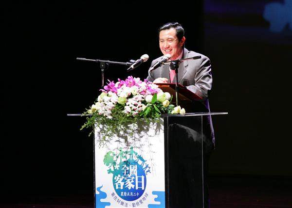 馬英九總統今天晚間出席行政院客家委員會所舉辦的第一屆「全國客家日」藝文晚會活動,與大家提早慶祝「全國客家日」,並期盼大家一起努力,傳承並發揚客家傳統文化。