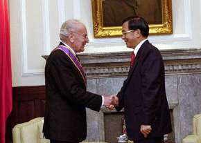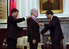陳總統水扁先生今天頒授「紫色大綬景星勳章」給義大利眾議院外交委員會主席賽爾瓦(Gustavo SELVA)議員,以表彰他對促進中義兩國友好合作關係的付出與貢獻。