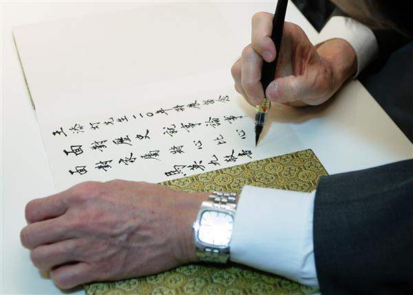 隨後,總統接受王添灯先生家屬致贈王添灯墨寶,並一同參觀紀念特展。