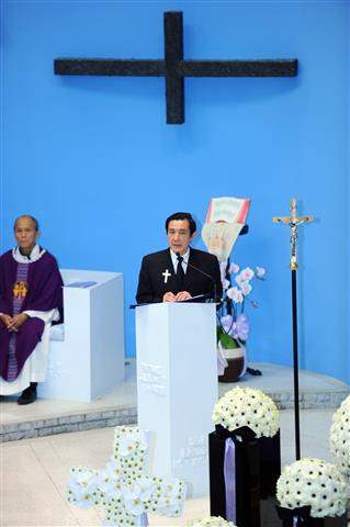 馬英九總統今天上午偕同蕭萬長副總統出席國父孫女孫穗芬女士追思彌撒,除全程參與彌撒儀式,並致詞表達對孫女士的追思與對其家屬的慰問之意。