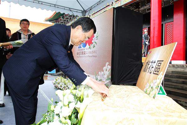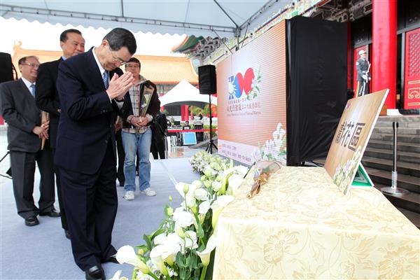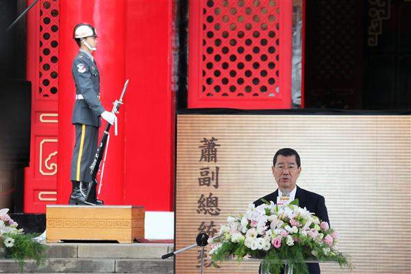 蕭萬長副總統上午出席由「行政院文化建設委員會」與「財團法人中華民國建國一百年基金會」共同主辦的「向先烈致敬 三二九感恩獻花」記者會。