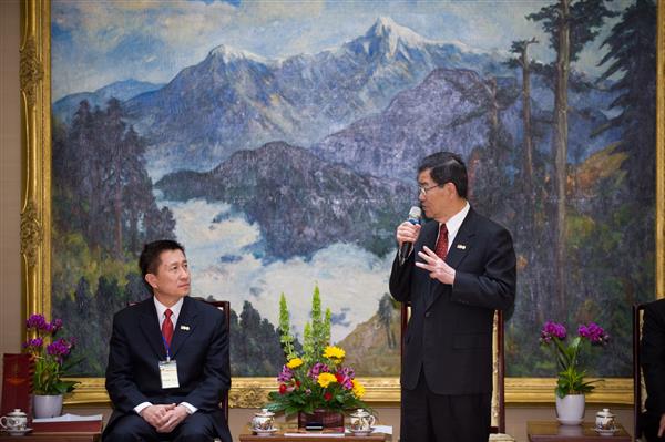 訪賓一行下午由行政院僑務委員會副委員長薛盛華陪同,前來總統府晉見蕭副總統。