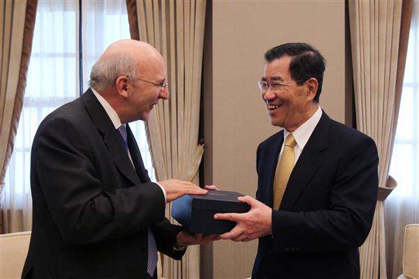訪賓一行由外交部主任秘書鄭天授陪同,前來總統府拜會副總統。