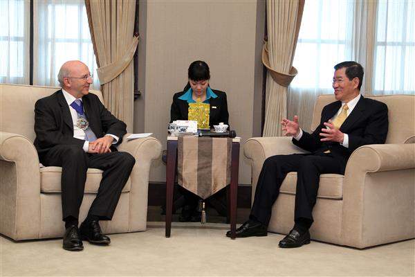 蕭萬長副總統上午接見英國倫敦金融城市長白爾雅(Michael Bear)等一行,對訪賓來台訪問,表達誠摯歡迎之意。