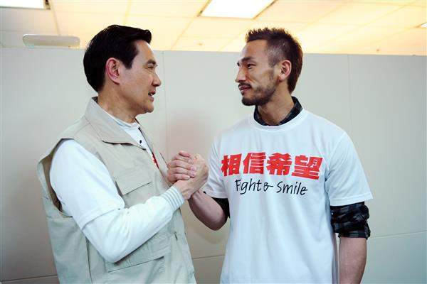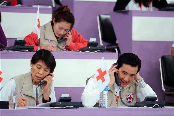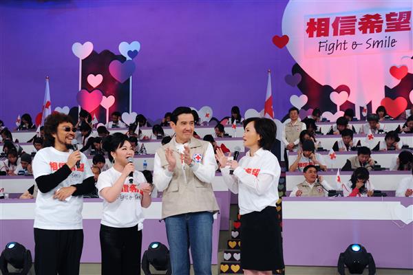 馬英九總統今天晚間出席「相信希望-Fight & Smile」募款晚會,呼籲全國民眾踴躍捐輸,協助日本度過震災,總統並率先捐出新台幣20萬元,也代蕭萬長副總統宣布捐出新台幣10萬元。隨後,總統親自接聽民眾call-in電話,為募款活動盡一份心力。