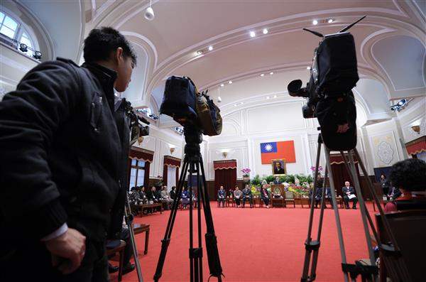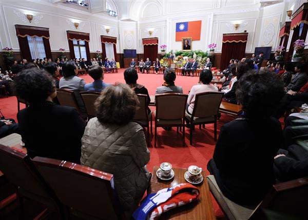 訪賓一行上午由「中華民國空軍子弟學校校友會」理事長葛光越率領,僑務委員會委員長吳英毅陪同,前來總統府晉見總統。