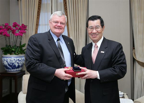 訪賓一行由行政院退輔會主委曾金陵陪同,前來總統府拜會副總統。