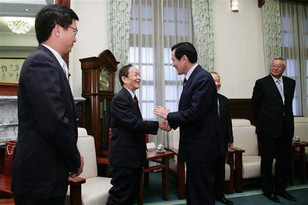 訪賓一行下午由該基金會主席徐立夫率領、行政院大陸委員會副主委趙建民陪同,前來總統府晉見總統,國安會諮詢委員陳德昇也在座。