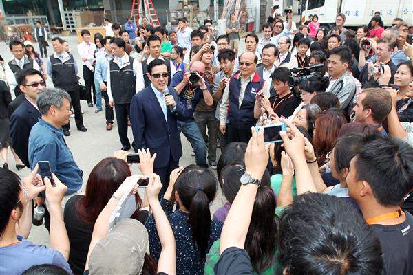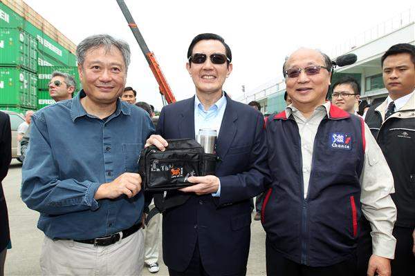 馬英九總統關心我國電影產業發展,上午由台中市長胡志強及行政院新聞局長江啟臣陪同,前往台中市水湳機場參訪李安導演拍攝新片「少年Pi漂流記」現場。