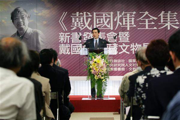馬英九總統今天下午出席「《戴國煇全集》新書發表會暨戴國煇珍藏文物展」開幕式,與國內外史學家一同紀念戴國煇教授八十歲冥誕,並見證集結其畢生心血的著作全集出版。