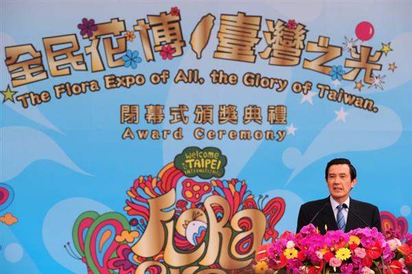 馬英九總統今天下午出席「2010臺北國際花卉博覽會閉幕典禮」,並感謝台北市政府團隊、全國花農、行政院各部會、民間企業團體及非政府組織等共同努力,展現出台灣前所未有的軟實力。