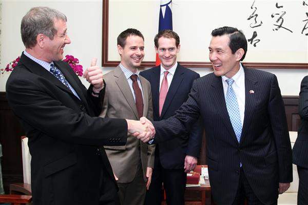 英國倫敦帝國學院校長Sir Keith O’Nions、生物醫學工程研究所長Christofer Toumazou、溝通與發展處長Tom Miller等人,上午由教育部次長林聰明及該校校董宏仁集團總裁王文洋陪同,前來總統府晉見總統,國家安全會議副秘書長劉志攻也在座。