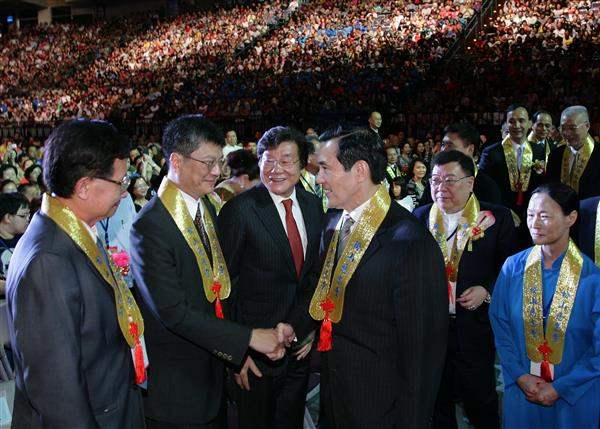 馬英九總統晚間偕同行政院長吳敦義、立法院長王金平、台北市長郝龍斌及新北市長朱立倫,出席松山慈惠堂所舉辦的「2011台北母娘文化季:弘揚母愛音樂會」,表揚30位全國慈悲楷模與250位孝悌楷模,向得獎者所展現的堅強毅力,表達肯定與讚揚。
