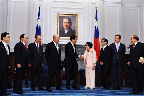 「第七屆兩岸經貿文化論壇」我方代表團成員包括:中國國民黨榮譽主席吳伯雄、副主席林豐正、蔣孝嚴,中評會主席團主席蔡政文、張榮恭,國發院院長兼大陸事務部主任高輝、中央評議委員李建榮,人民最大黨主席許榮淑及新黨文宣部執行長陳琴富等,前來總統府晉見總統,總統府秘書長伍錦霖及國家安全會議秘書長胡為真也在座。