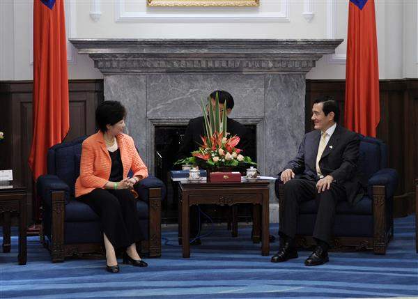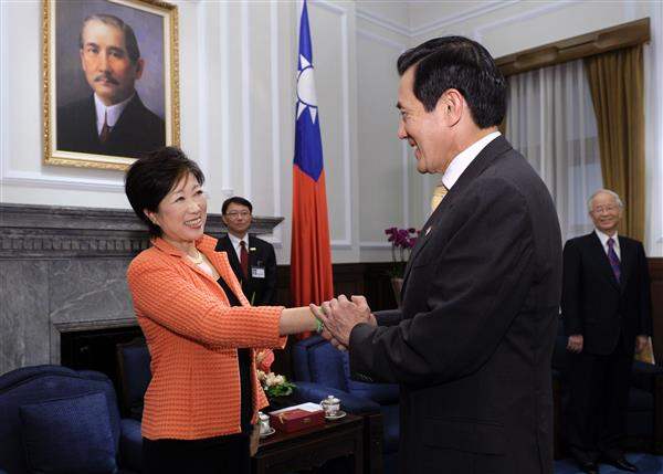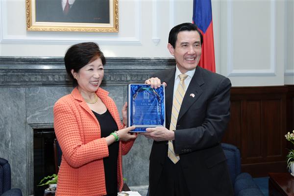 馬英九總統今天下午接見日本眾議員小池百合子(Koike Yuriko)。小池眾議員此行係代表日本自民黨總裁谷垣禎一專程前來感謝台灣各界對日本三一一地震的關懷與捐輸,並特別呈贈以中文雕刻的水晶座予總統表達由衷謝忱。