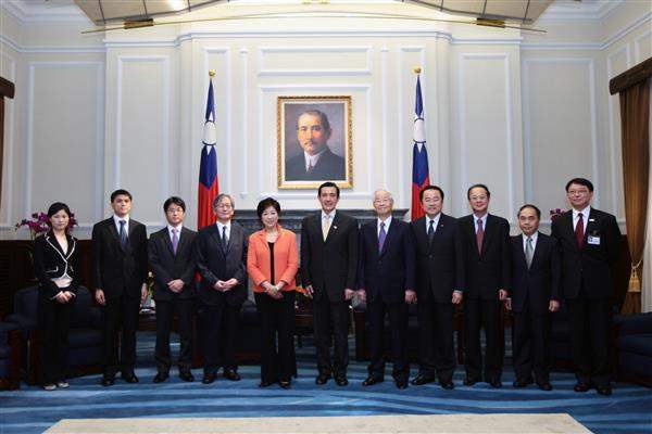 訪賓一行下午由亞東關係協會會長彭榮次與日本交流協會代表今井正陪同,前來總統府晉見總統,國家安全會議諮詢委員李嘉進也在座。