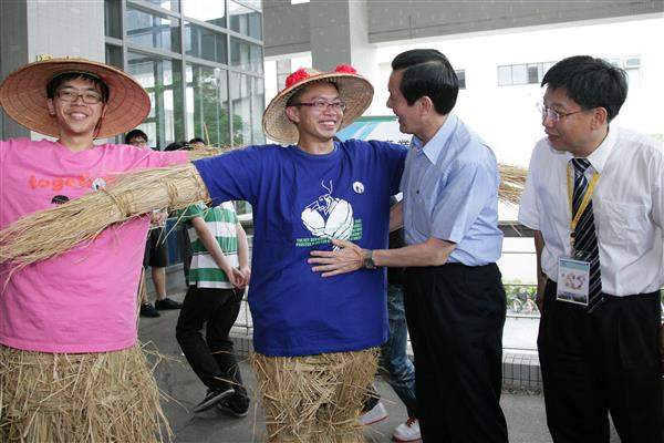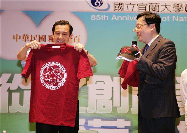 馬英九總統下午在宜蘭大學與黃春明老師對談,並以「從文創產業談稻草人集合」為題,就如何賦予傳統文化新生命、文化創意產業發展、本土藝術融入現代元素等議題交換意見。包括宜蘭大學師生約250人也參與此一座談會。