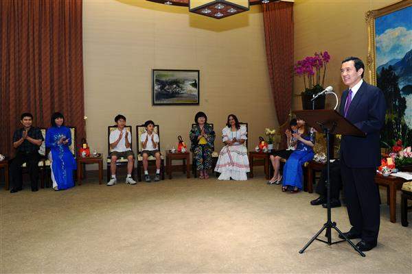 馬英九總統上午接見台灣新住民代表及眷屬,期盼新住民朋友們能儘快融入台灣社會,一起為台灣打拚。