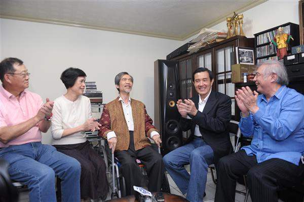 馬英九總統下午前往新北市新店區探視罹患帕金森氏症的名音樂家李泰祥先生,除推崇李大師每天創作的過人毅力,也祝福他永保創作活力。