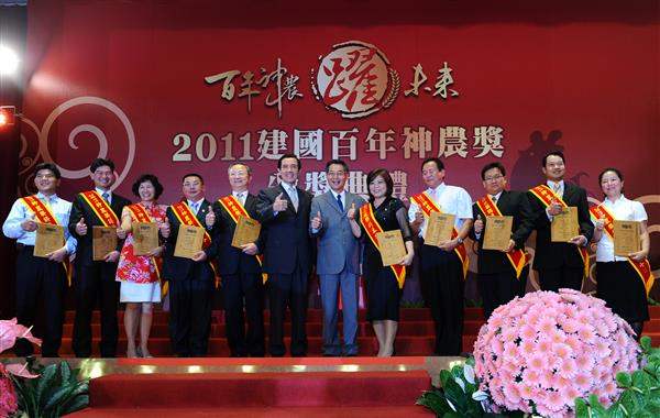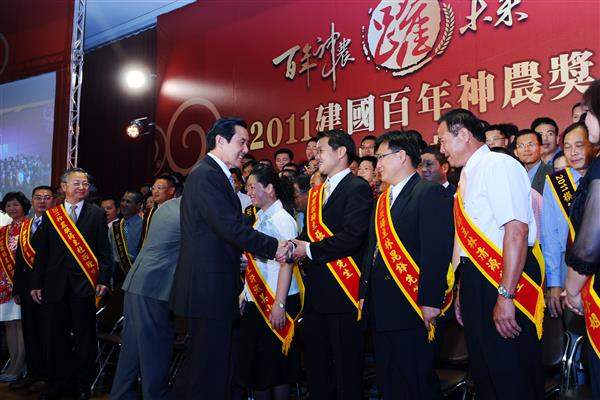 馬英九總統下午出席「建國百年神農獎頒獎表揚活動」,親自為今年的十大神農頒獎,以肯定農業與農民對我國環境與社會的重大貢獻。
