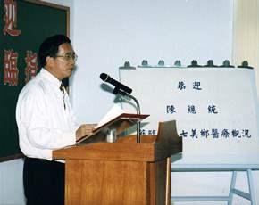 隨後,總統也前往七美鄉衛生所聽取,相關簡報及視察醫療設施。總統致詞時則表示,今天到七美、望安來,心理一直想著的就是前不久在電視上看到他的好朋友-前七美鄉東湖村陳勝雄村長,後送就醫而不幸逝世的事。當時他就交待幕僚,無論公務有多繁忙,一定要在最短的時間內,安排他親自到七美、望安一趟,實際了解偏遠地區的醫療後送制度,看看哪裏有需要改進的地方,否則一而再的聽到或看到不幸事故的發生,各級政府事後再怎麼解釋或加強施政,在民眾聽起來,好像都是在應付了事,不然就是緩不濟急。總統說,如果相關官員能夠多盡一分心,相信民眾一定可以受到十分惠;同樣的,如果政府能夠事先多吃一點苦,人民一定可以沾到萬點恩。近年以來,政府雖致力於改善山地離島的衛生醫療資源與系統,這些努力,值得肯定,但一定要加以落實強化,才能使類似陳村長的不幸事件,不再發生。