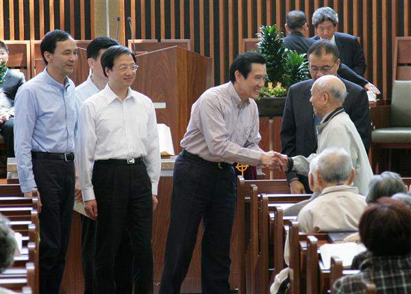 馬英九總統今天上午由內政部長江宜樺及新北市長朱立倫陪同,前往新北市三芝區訪視台灣基督教長老教會雙連教會附設雙連安養中心。
