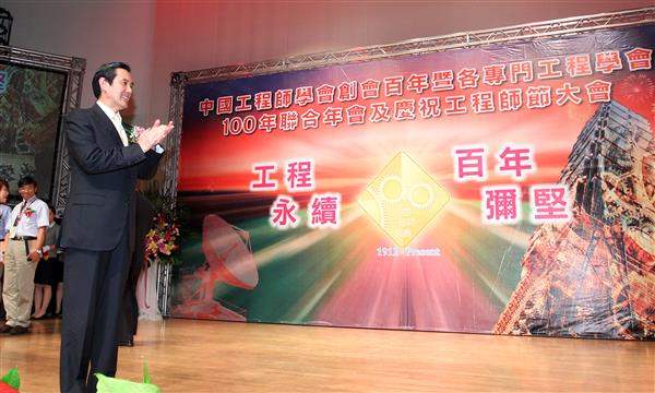 馬英九總統下午出席「中國工程師學會創會百年暨各專門工程師學會100年聯合年會及慶祝工程師節大會」,並親自頒發工程獎章、傑出工程教授等獎項,以表彰工程界對國家經濟發展的卓越貢獻。