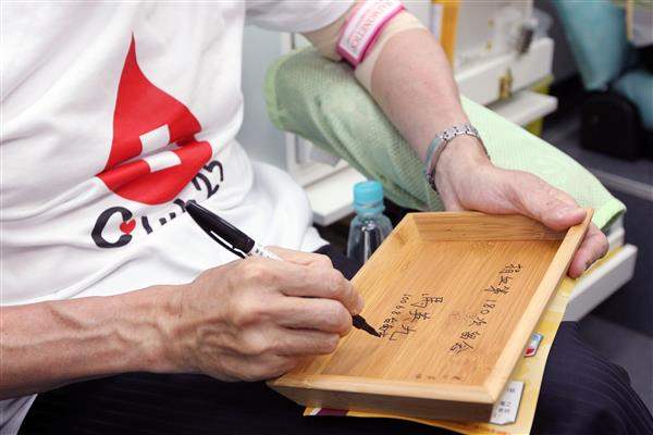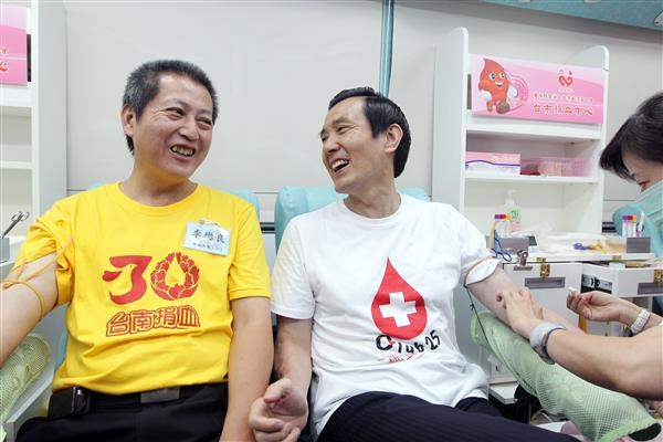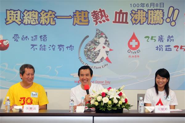 隨後,總統前往捐血車捐血,親身推廣捐血的益處,並與捐血次數高達1,471次的張國森先生與高齡捐血者陳林金蘭女士等人晤談。總統說,人捐血後,血小板會以7倍的速度造血,促進新陳代謝,讓身體更健康;過去20多年來,他已捐血180次,儼然已成為分享人生的一部分,因為人生除了可以靠做志工分享時間精力、捐錢分享財產,也可以靠捐血分享健康、捐器官分享生命,或是捐大體分享剩餘價值,因此民眾應多捐血,為社會奉獻心力。
