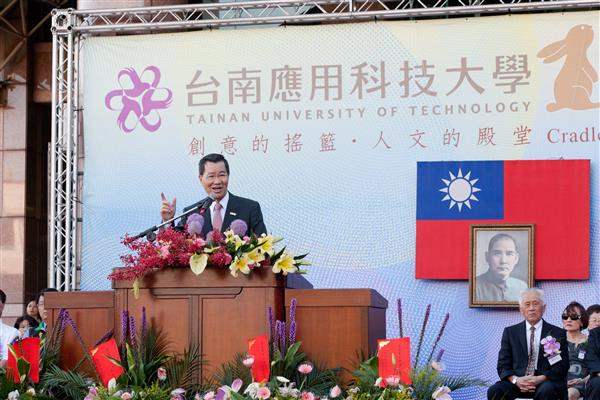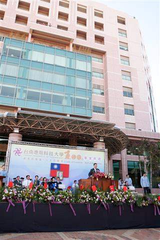 副總統致詞時表示,他與「台南應用科技大學」有特殊的淵源,幾年前該校成立「蕭萬長講座」,邀請國內外專家學者到校演講,受到很高評價,令他欣慰;此外,該校多年來不斷因應時代潮流,從1954年成立的「台南家政專科學校」轉型升級而來,在「文化創意」的主軸及「創意搖籃‧人文殿堂」的目標下教育英才,並在國內外各項競賽中發光發熱,已蔚然成為一所別具特色的大學,也是我國技職教育的典範。