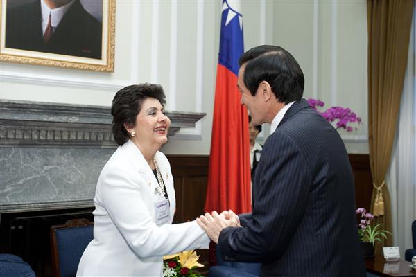 馬英九總統上午接見「中美洲議會」代議長莉亞(Hon. Dip. Hena Ligia Madrid Lizardo de Torres、宏都拉斯籍)一行,對訪賓來華,代表我國政府與人民表達誠摯歡迎之忱。