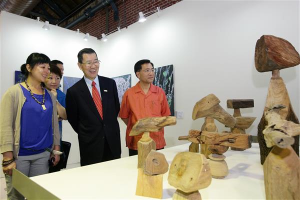副總統說,國際知名藝術家吳炫三經常到全世界各原始部落旅行,收藏許多難得一見的東西,如長毛象牙等;而他的藝術成就,除繪畫外、亦有雕塑及結合稀有蒐藏複合媒材創作品等,創作能量就像他的英文名字「A Sun」一樣,如太陽般熱情源源不絕,充滿生命力。此外,台東新銳藝術家池上鳳珠也是一位非常傑出的年輕藝術家,這次她以我們生活常見的“水”作為創作主題,以不同的素材來表現水千變萬化的各種姿態,反映出對於大自然深刻的體悟。