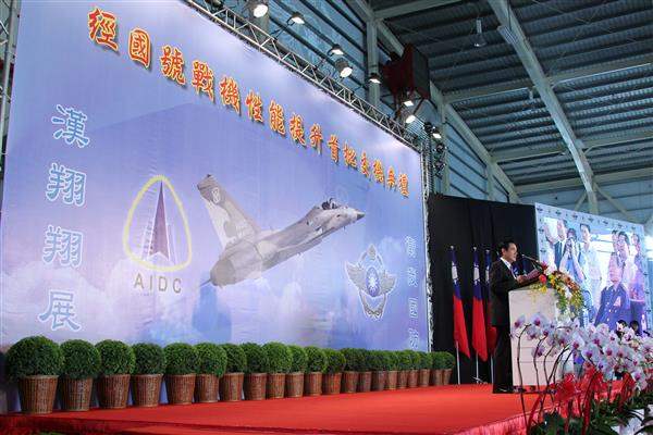 馬英九總統上午前往台中市沙鹿區出席經國號戰機性能提升「翔展計畫」首批交機典禮,肯定並感謝漢翔全體員工的努力,同時重申「國防自主、國機國造」是政府永不放棄的目標。