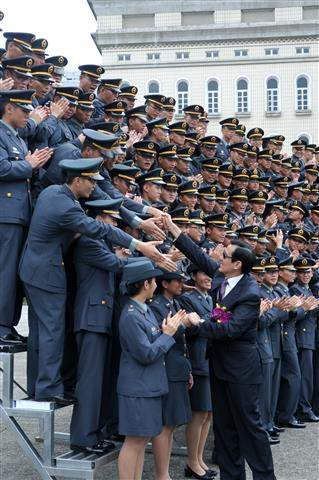 總統表示,家人的鼓勵與扶持是同學日後成功非常重要的本錢,希望家長們繼續支持子弟們為國家社會奉獻,政府也會透過法規制度,包括軍人福利條例、軍人及其家屬優待條例以及輔導條例等法規,盡最大可能協助軍人家庭。