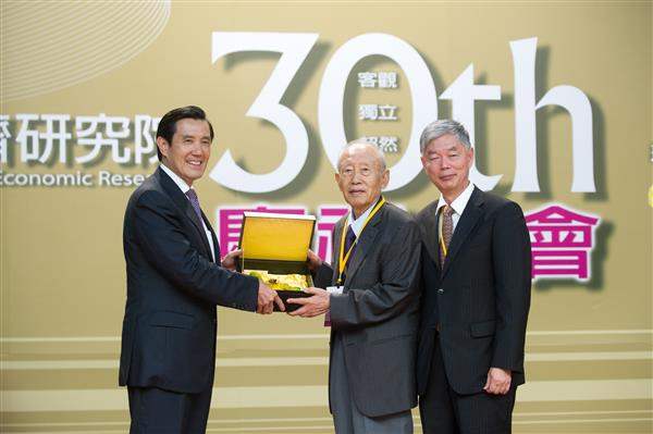 今天是「中華經濟研究院」創院30週年,馬英九總統下午出席該院慶祝大會,並頒發「特別貢獻獎」予該院前院長于宗先院士,表彰其對台灣經濟發展的貢獻。