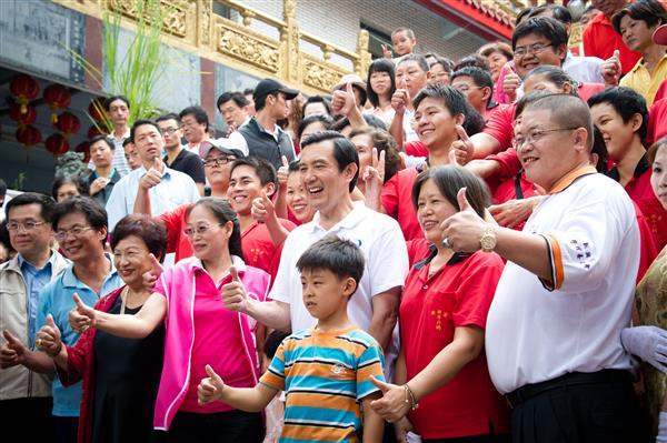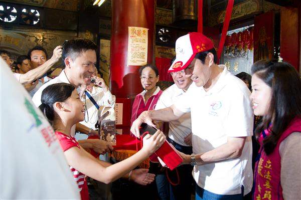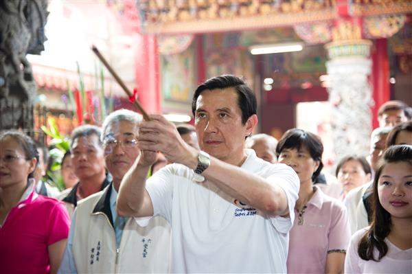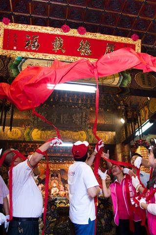 馬英九總統下午前往雲林縣斗六市進行百年老廟巡禮活動,分別為新興宮「福載德厚」與受天宮「布澤化度」揭匾,並參香祈求風調雨順、國泰民安。