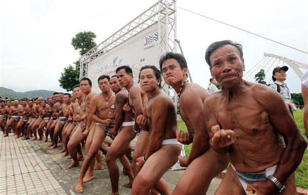 參與這項海渡活動的勇士們經過長時間划行,不畏日曬雨淋來到臺灣,總統抵達活動現場時,除先參觀勇士們乘划的大船,聽取造船解說,並以達悟族特有「碰鼻子」招呼方式,向他們問候致意。