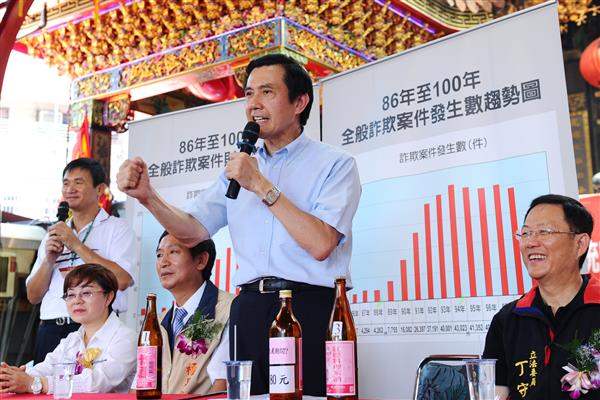 總統特別以與民眾最切身相關的議題-米酒價格及詐騙電話向現場鄉親說明,他上台後,為民眾權益努力打拼,與歐美酒商談判將米酒改列為料理類,把價格從過去的每瓶180元降到目前的25元;此外,並與中國大陸簽署兩岸共同打擊犯罪及司法互助協議,至今雙方共合作緝捕兩千多名詐騙犯,一個月前更史無前例派遣專機將223名詐騙犯接回台灣受審,因此今年可望將詐騙案件數降到2萬4千件、詐騙金額降到46億元。