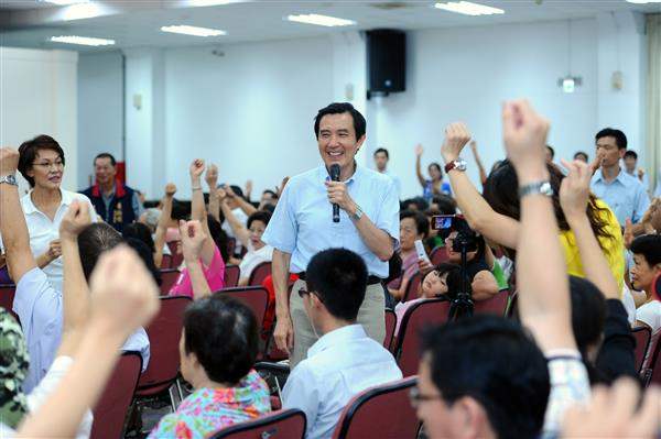 馬英九總統下午由教育部長吳清基、國防部副部長楊念祖、交通部次長郭蔡文及行政院體育委員會主委戴遐齡等陪同,與高雄鄉親進行座談,說明政府三年來的施政成果,並與現場鄉親意見交流。