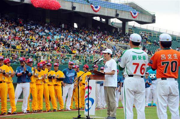 隨後,總統由行政院體育委員會主任委員戴遐齡、中華職棒聯盟會長趙守博及高雄市副市長李永得等陪同,前往澄清湖棒球場參加「中華職棒紅白明星對抗賽開幕典禮」,以實際行動展現對台灣職棒的熱愛與支持;總統並邀請甫贏得今年世界少棒錦標賽冠軍的中華少棒代表隊投手曾偉恩進行開球儀式,引起現場球迷熱烈歡呼。
