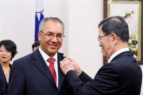 副總統表示,訪賓此行將代表多國費南德斯總統贈勳予我經濟部施顏祥部長及梁國新次長,我政府亦將頒贈馬丁尼斯部長「大綬景星勳章」,表彰馬丁尼斯部長長期推動兩國關係發展的貢獻。