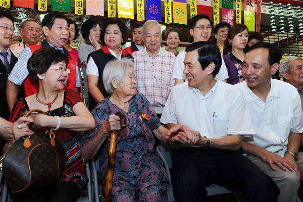 總統也在慈惠宮與地方鄉親互動,進行有獎徵答。總統特別準備了米酒瓶、鳳梨酥禮盒以及86年至100年國內詐欺案件發生件數及財損趨勢表,向鄉親說明政府的施政成果。