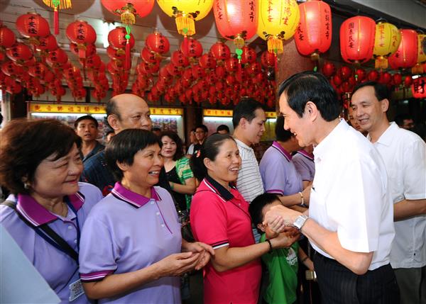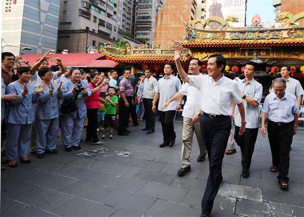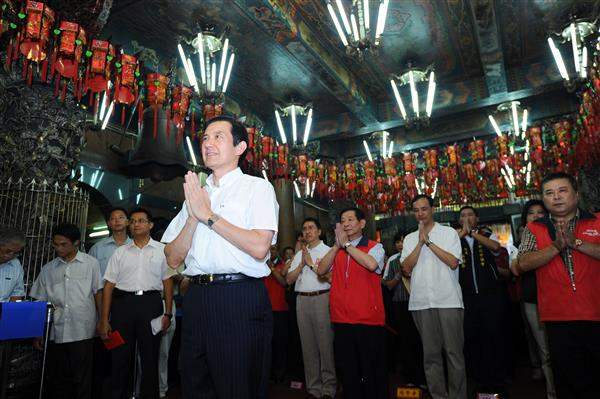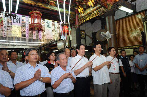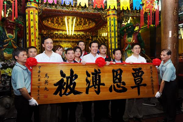 馬英九總統下午前往新北市板橋區接雲寺及慈惠宮祈福參拜,祈求風調雨順、國泰民安,並致贈慈惠宮「覃恩溥被」匾額。