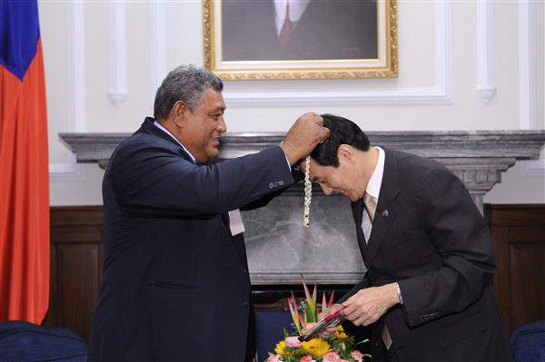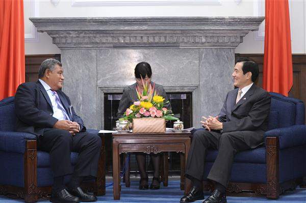 馬英九總統接見吐瓦魯外交部長葉雷米亞 (H.E. Apisai Ielemia )伉儷,對訪賓來華訪問,代表我國政府與人民表達誠摯歡迎之意。