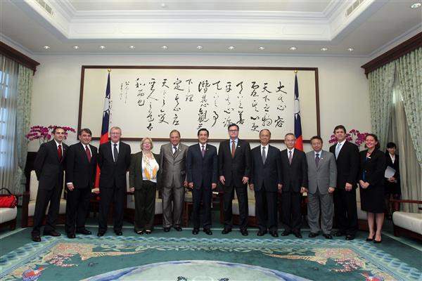 訪賓一行上午由該會副主席沈丹寧(Daniel Slane)帶領,前來總統府晉見總統,國家安全會議副秘書長鄧振中也在座。