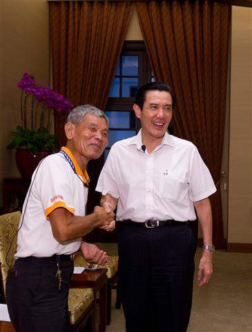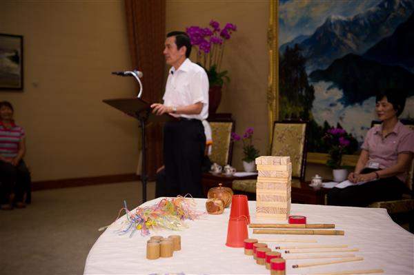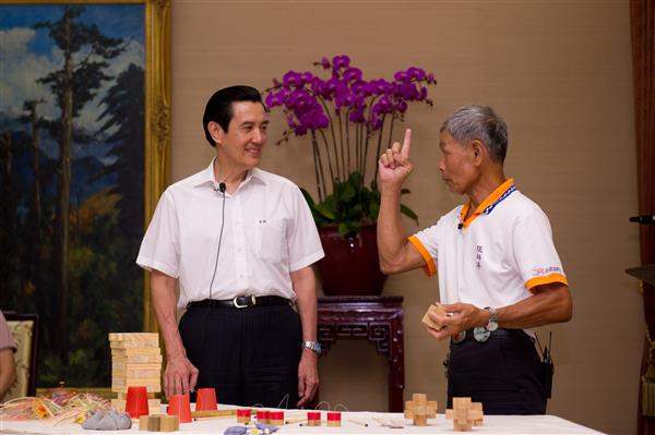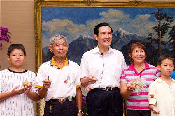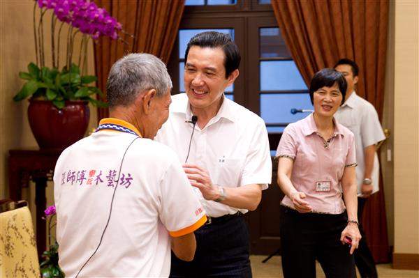 馬英九總統下午在總統府接見「台灣之光系列人物」--童玩達人張文雄師傅,感謝張師傅懷抱童心與熱情創作童玩,為小朋友們創造一個充滿豐富想像力的童年。