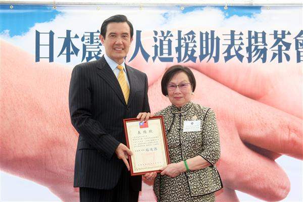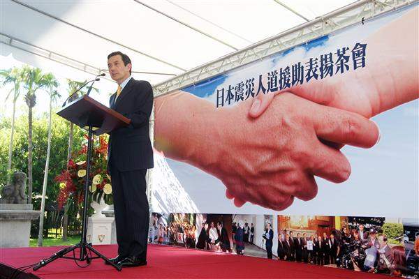 馬英九總統下午出席外交部「日本震災人道援助表揚茶會」,對於國內各界踴躍對日捐輸,使中華民國備受國際矚目,表達誠摯敬意與謝忱,期盼國人共同努力,將台灣打造成為「人道援助的提供者」。
