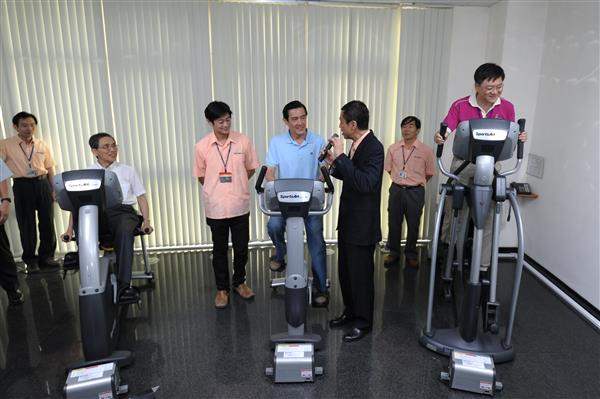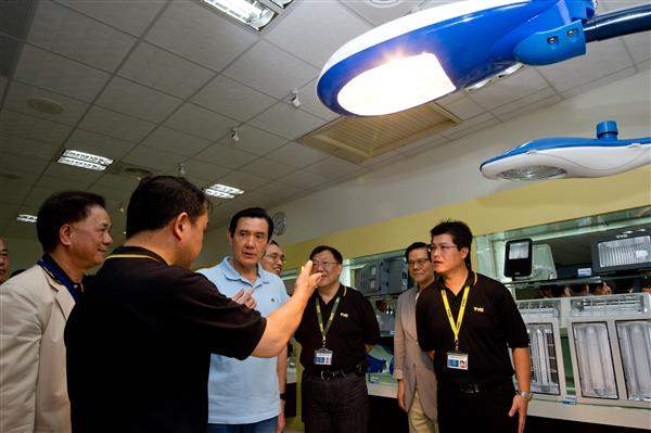 隨後,總統由經濟部長施顏祥陪同,參訪堤維西股份有限公司,瞭解汽車燈具裝配生產過程及節能燈具,並勉勵業者持續開發省電新科技,落實節能減碳。之後再轉往力伽實業股份有限公司,親自體驗綠能自行車及可調彈性跑步機等各式高科技運動器材,對國內企業的創新精神及成果,力加讚揚。
