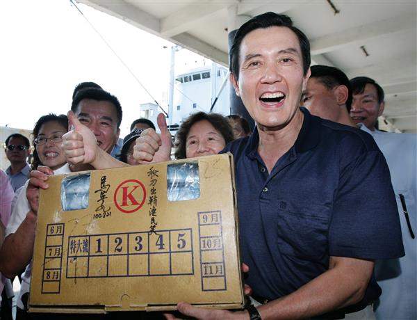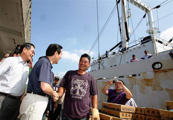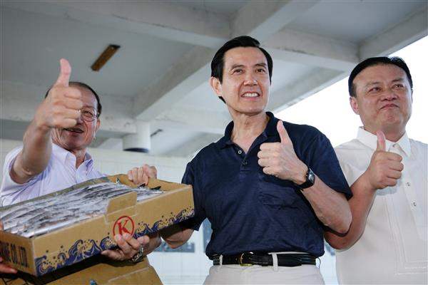 馬英九總統上午前往高雄市前鎮漁港視察秋刀魚卸貨情形,向國人確保秋刀魚安全無虞,並表示「兩岸經濟協議」(ECFA)生效後,今年1至7月外銷至大陸的秋刀魚出口量、值均較去年同期成長9倍,足見ECFA效益顯著。